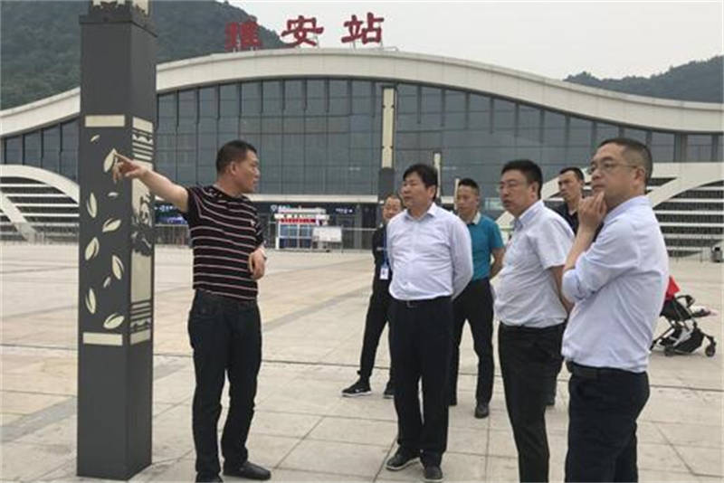 在雅安火車站站前廣場(chǎng),朱濤一行詳細(xì)了解了行李滑道建設(shè)項(xiàng)目、地下停車場(chǎng)、安全提示標(biāo)識(shí)等方面的情況,并聽取了簡(jiǎn)智勇就相關(guān)事宜的匯報(bào)。