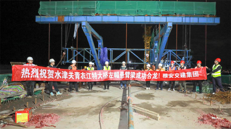 10月31日,成雅快速通道控制性工程水津關(guān)青衣江特大橋左幅懸臂梁成功合龍,標(biāo)志著大橋主橋部分正式進入合龍階段,為跨江架設(shè)預(yù)制梁提供了縱向通道,也為年底實現(xiàn)半幅貫通打下了堅實基礎(chǔ)。