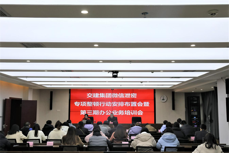 11月25日,雅安交建集團召開微信泄密專項整頓行動安排布置會暨2021年第三期辦公業(yè)務(wù)培訓(xùn)會,安排落實市委保密委關(guān)于開展微信泄密專項整頓行動相關(guān)工作部署,并就會務(wù)組織和紀(jì)要撰寫有關(guān)辦公業(yè)務(wù)知識進行專題培訓(xùn)。各子公司、各部門共計40余人參加會議。