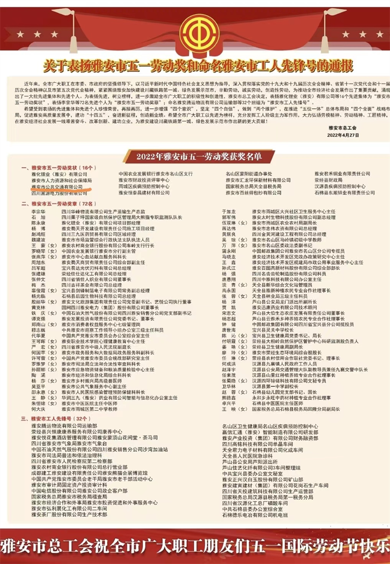 4月28日,市總工會召開2022年雅安市慶祝“五一”國際勞動節(jié)暨表揚(yáng)大會,交建集團(tuán)雅安市公共交通有限公司榮獲全市五一勞動獎狀殊榮。