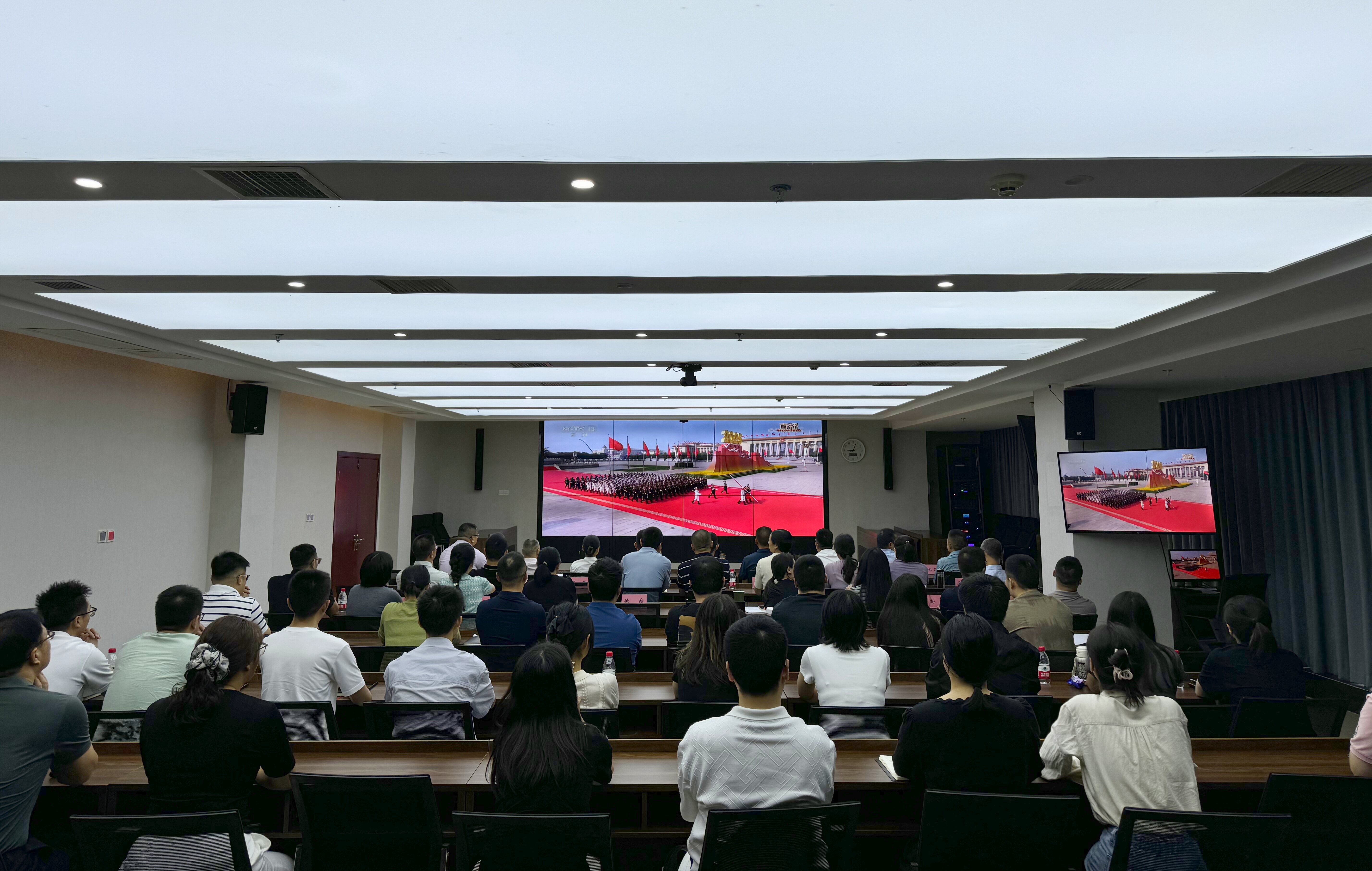 在集團機關(guān)會議室,干部職工神情莊重,通過高清投影實時觀看紀(jì)念大會直播,從莊嚴(yán)肅穆的紀(jì)念儀式到振奮人心的重要講話,每一個環(huán)節(jié)都讓在場人員深受震撼。與此同時,集團下屬子公司分別在項目指揮部、客運場站、物流園區(qū)等場所組織集中觀看,確保一線員工同步參與學(xué)習(xí)。在國道318線改建工程項目部現(xiàn)場,建設(shè)者們在工地臨時會議室集中收看,斑駁的工裝與鮮紅的黨旗交相輝映,成為現(xiàn)場最鮮明的印記。