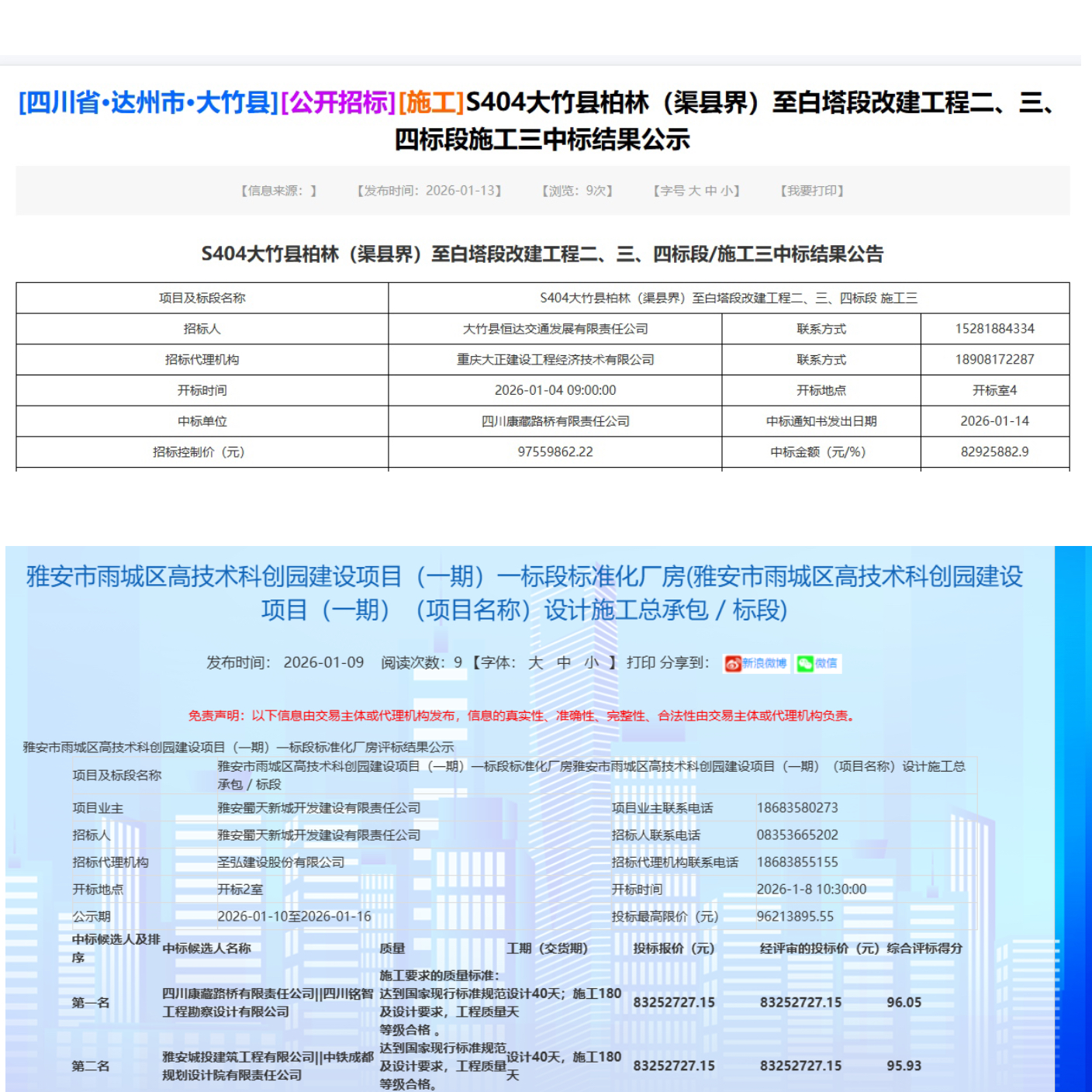 其中,S404大竹縣柏林(渠縣界)至白塔段改建工程中標(biāo)金額8292萬元,工期24個月;雅安市雨城區(qū)高技術(shù)科創(chuàng)園建設(shè)項目(一期)中標(biāo)金額8325萬元。此次連續(xù)中標(biāo),是康藏路橋公司深入落實“走出去”發(fā)展戰(zhàn)略、積極拓展外部市場的重要成果,標(biāo)志著公司在跨區(qū)域經(jīng)營方面邁出實質(zhì)性步伐,進(jìn)一步鞏固了在公路改建和園區(qū)建設(shè)領(lǐng)域的專業(yè)優(yōu)勢與市場地位。