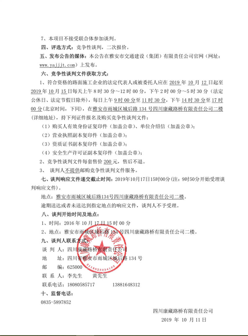 雅安市西入口整治與形象提升改造項(xiàng)目路面工程施工勞務(wù) 競(jìng)爭(zhēng)性談判公告