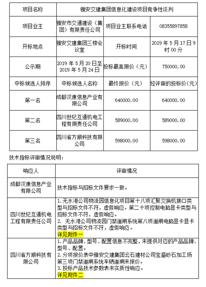 雅安交建集團(tuán)信息化建設(shè)項(xiàng)目競(jìng)爭(zhēng)性談判評(píng)標(biāo)結(jié)果公示