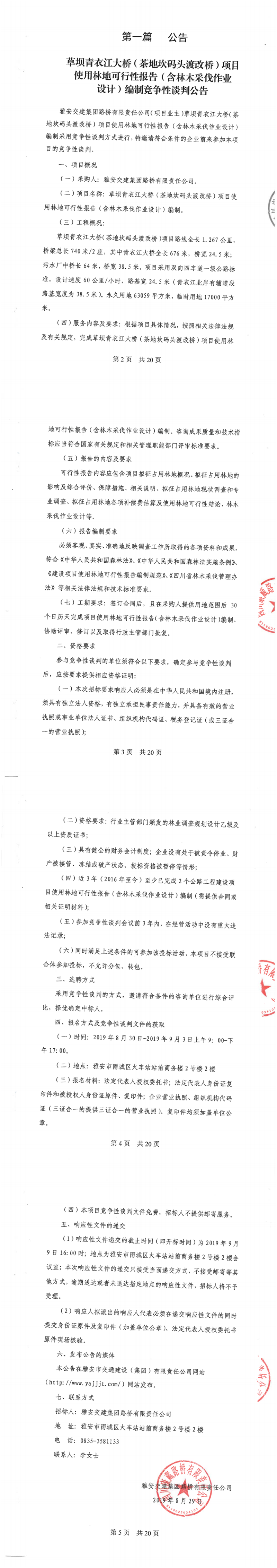 雅安交建集團路橋有限責(zé)任公司草壩青衣江大橋(茶地坎碼頭渡改橋)使用林地可行性報告(含林木采伐作業(yè)設(shè)計)編制競爭性談判公告