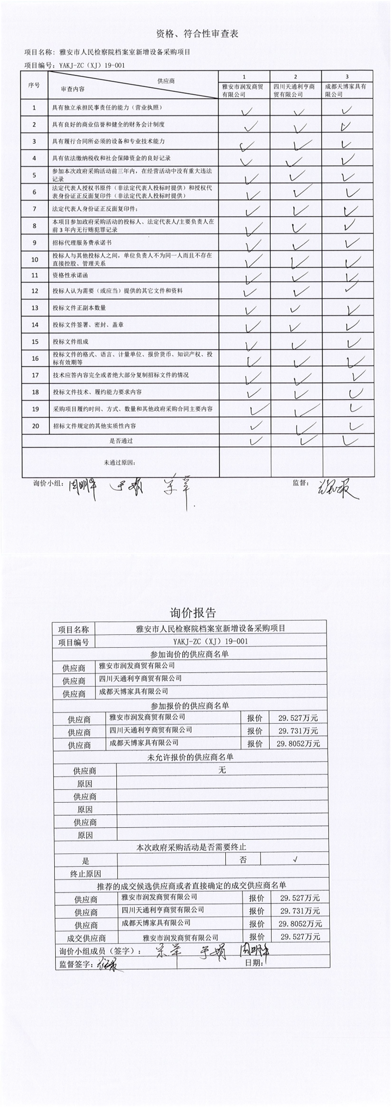 雅安市人民檢察院檔案室新增設(shè)備采購項(xiàng)目結(jié)果公示