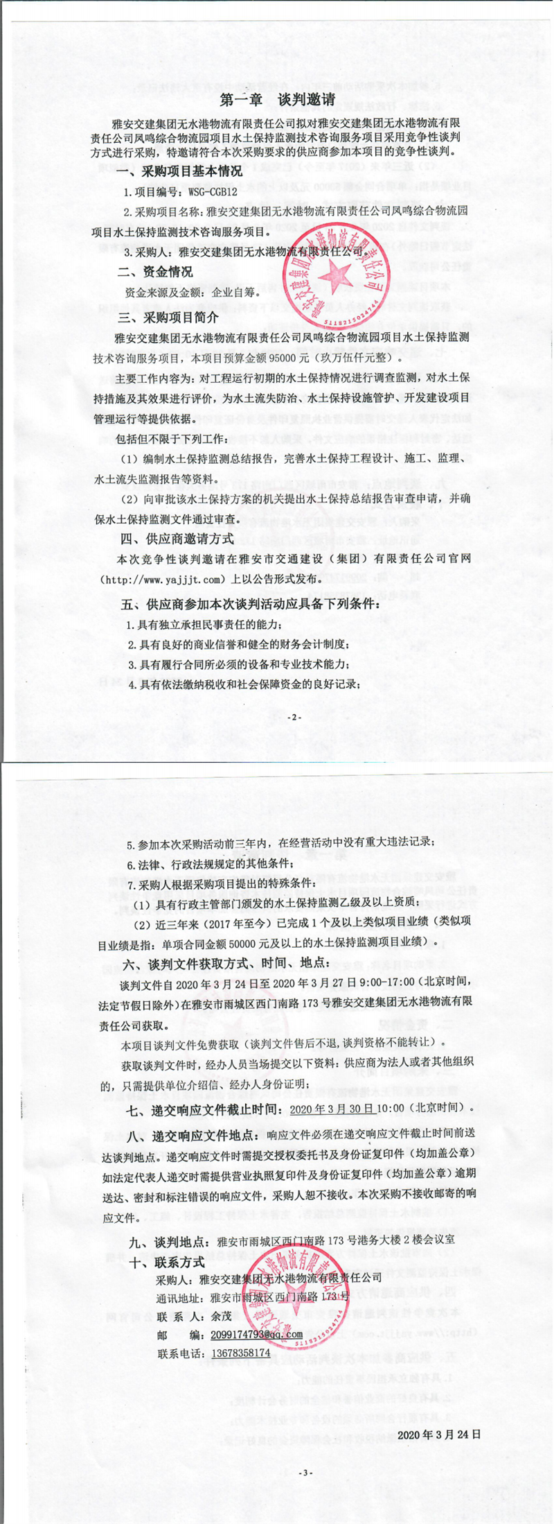 雅安交建集團無水港物流有限責任公司鳳鳴綜合物流園項目水土保持監(jiān)測技術(shù)咨詢服務(wù)項目競爭性談判公告