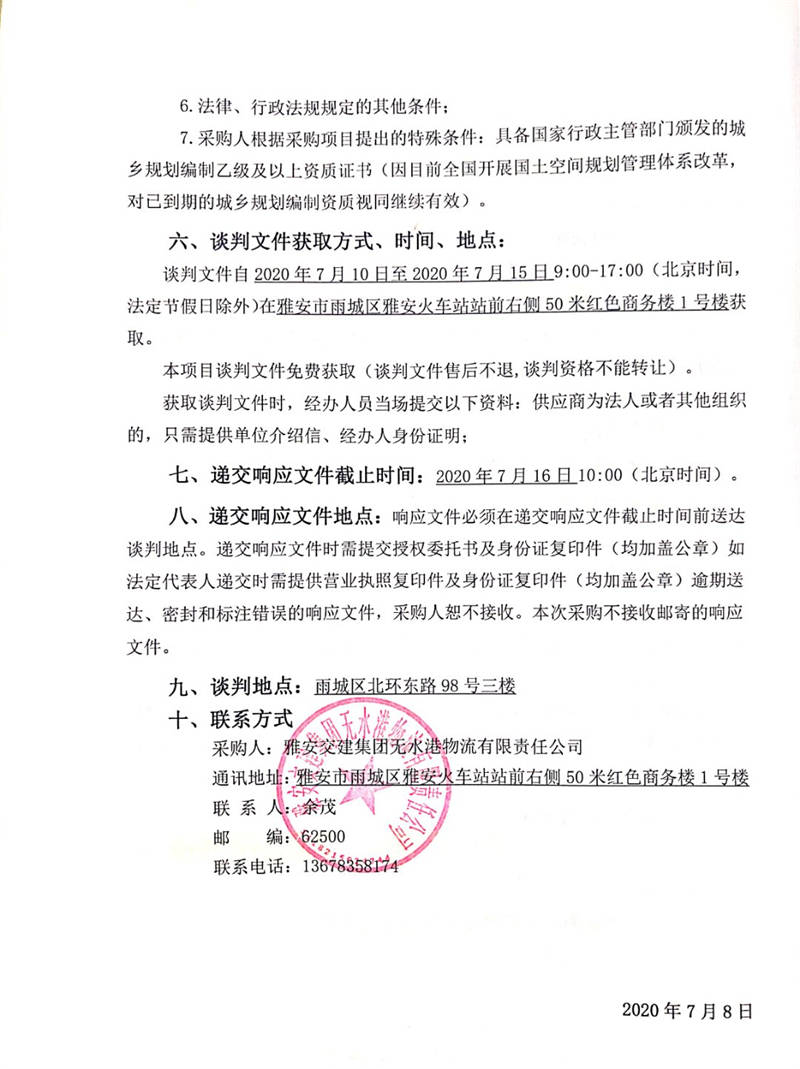 雅安交建集團(tuán)無水港物流有限責(zé)任公司雅安市鳳鳴綜合物流園項目概念規(guī)劃咨詢服務(wù)競爭性談判公告
