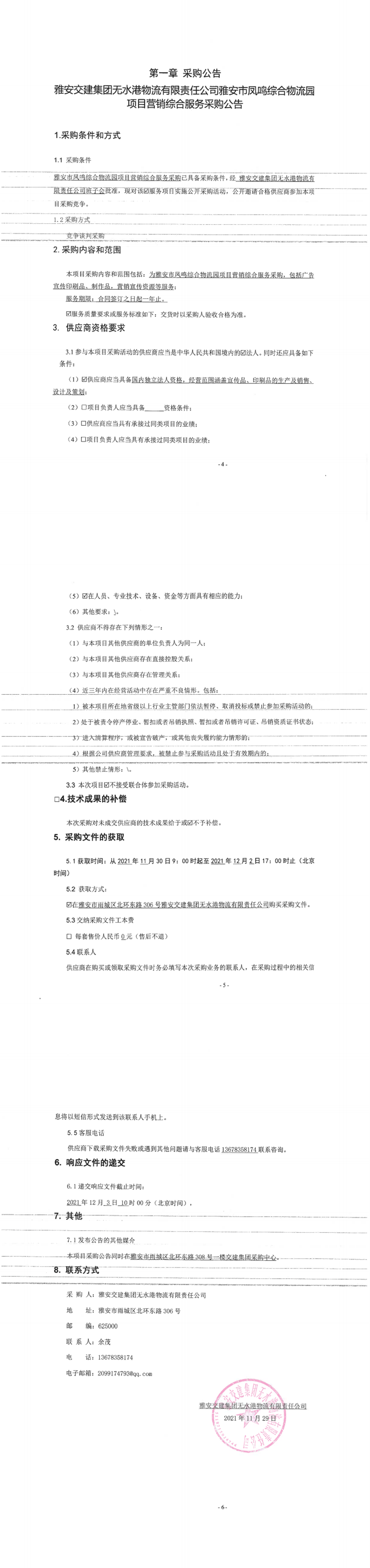 雅安交建集團無水港物流有限責任公司雅安市鳳鳴綜合物流園項目營銷綜合服務(wù)采購公告