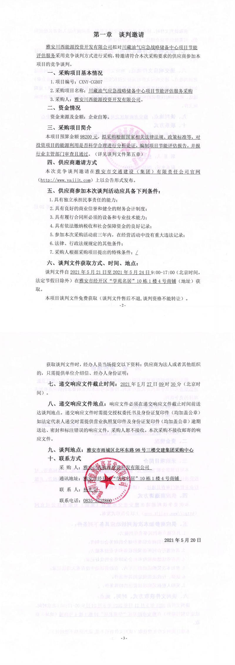 雅安川西能源投資開發(fā)有限公司川藏油氣應急戰(zhàn)略儲備中心項目節(jié)能評估服務采購競爭談判公告