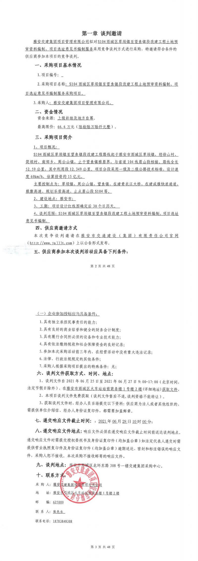 雅安交建集團(tuán)項(xiàng)目管理有限公司S104雨城區(qū)草壩鎮(zhèn)至望魚鎮(zhèn)段改建工程土地預(yù)審資料編制、項(xiàng)目選址意見書編制服務(wù)采購項(xiàng)目