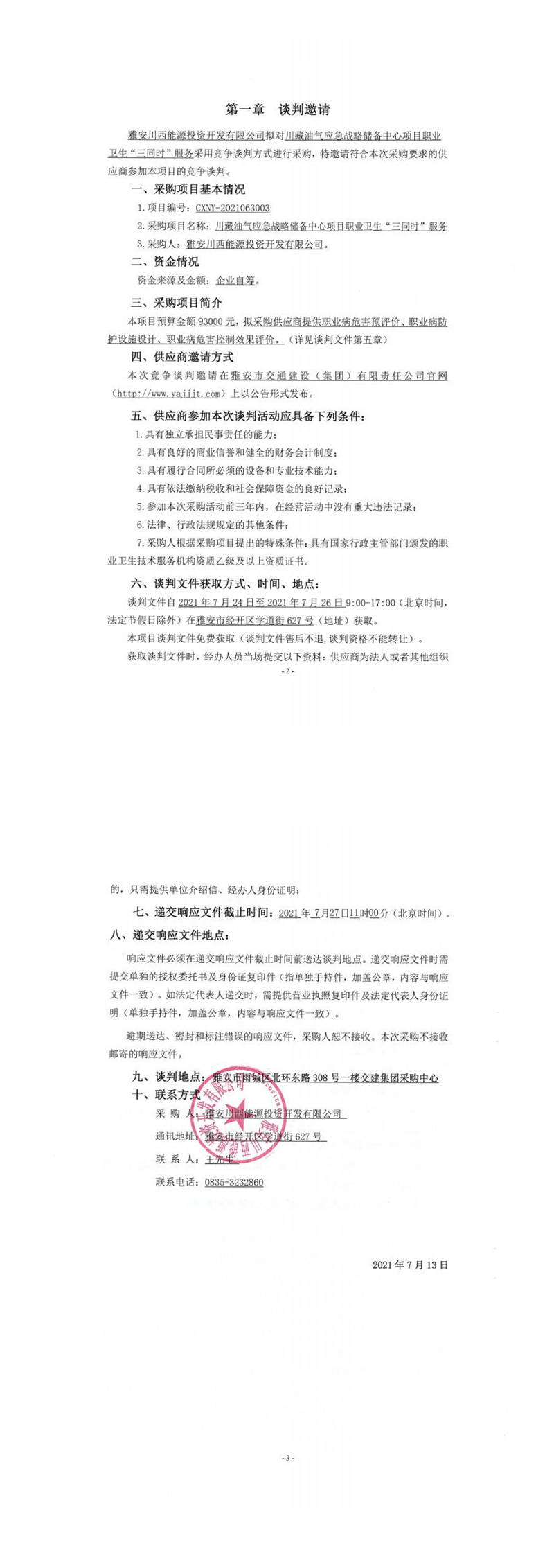 雅安川西能源投資開發(fā)有限公司川藏油氣應(yīng)急戰(zhàn)略儲(chǔ)備中心項(xiàng)目職業(yè)衛(wèi)生“三同時(shí)”服務(wù)競爭談判公告