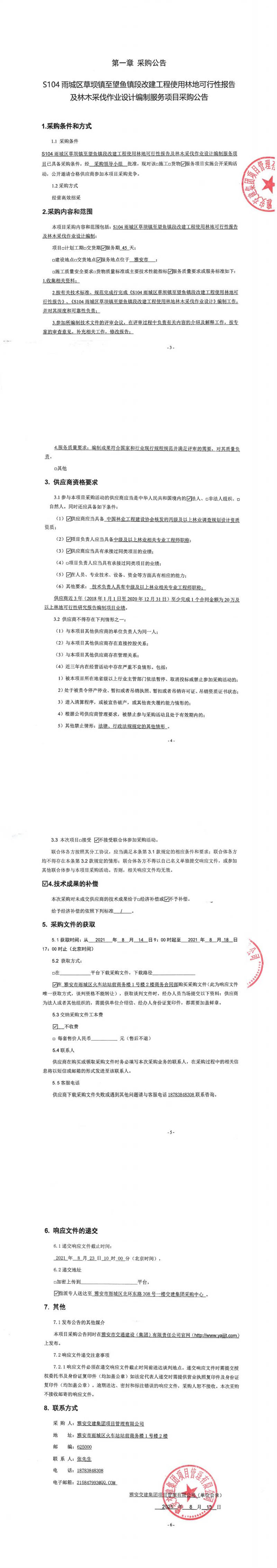 雅安交建集團(tuán)項目管理有限公司S104雨城區(qū)草壩鎮(zhèn)至望魚鎮(zhèn)段改建工程使用林地可行性報告及林木采伐作業(yè)設(shè)計編制服務(wù)項目采購公告