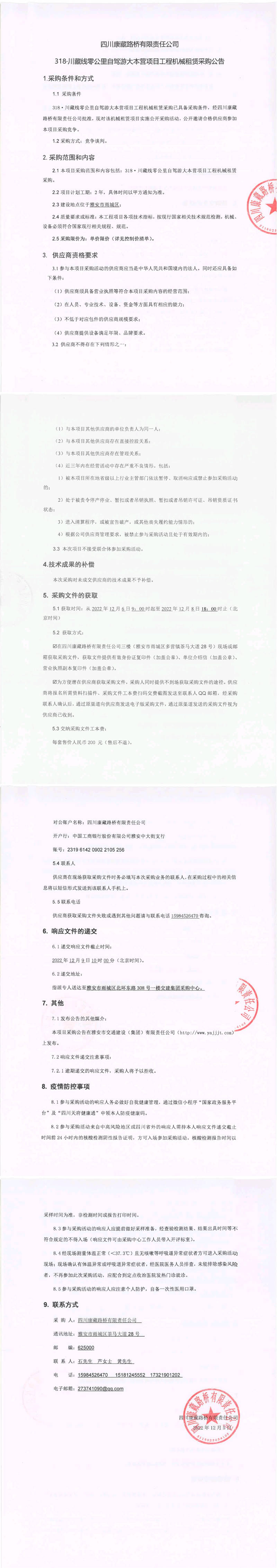 四川康藏路橋有限責(zé)任公司318.川藏線零公里自駕大本營(yíng)項(xiàng)目工程機(jī)械租賃采購(gòu)公告