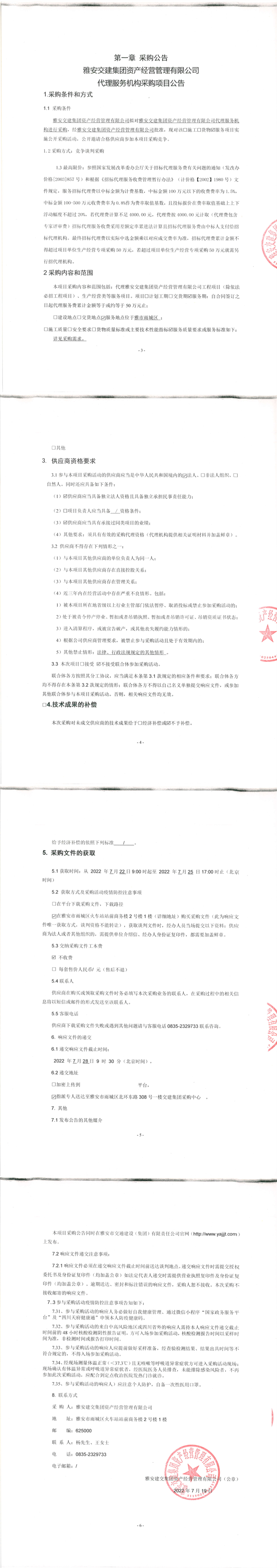 雅安交建集團(tuán)資產(chǎn)經(jīng)營管理有限公司代理服務(wù)機(jī)構(gòu)采購項目公告