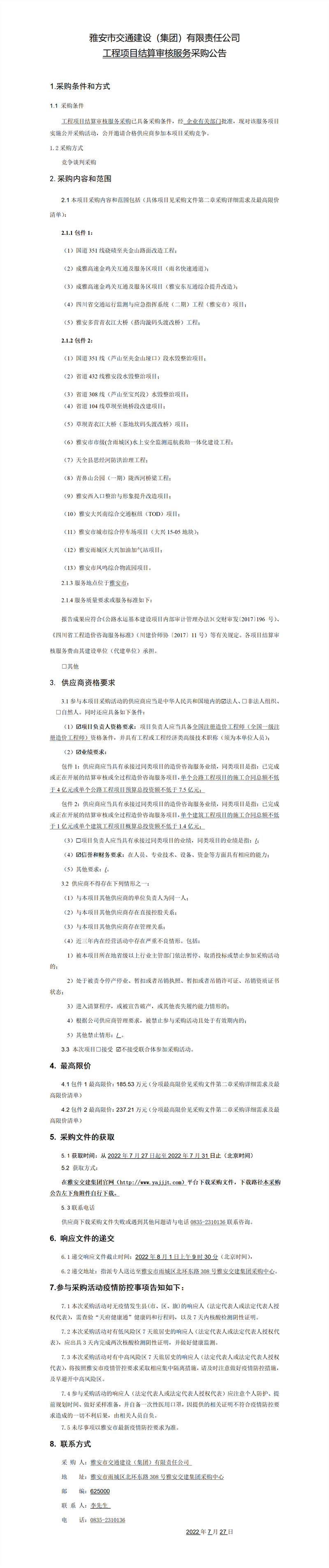 雅安市交通建設(shè)(集團)有限責任公司工程項目結(jié)算審核服務(wù)采購公告