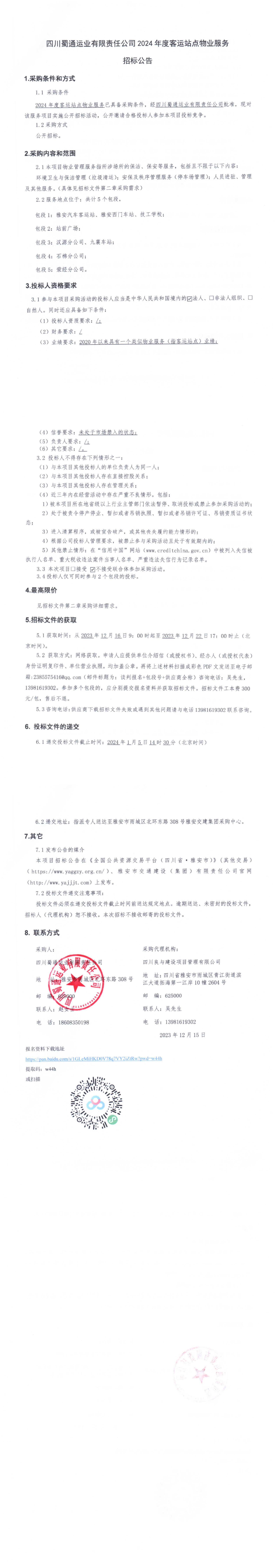 四川蜀通運業(yè)有限責任公司2024年度客運站點物業(yè)服務招標公告