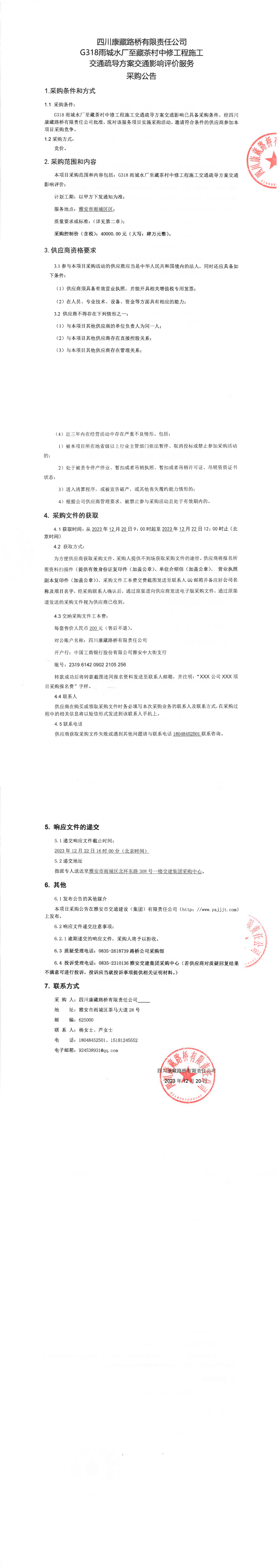 四川康藏路橋有限責(zé)任公司G318雨城水廠至藏茶村中修工程施工交通疏導(dǎo)方案交通影響評(píng)價(jià)服務(wù)采購(gòu)公告