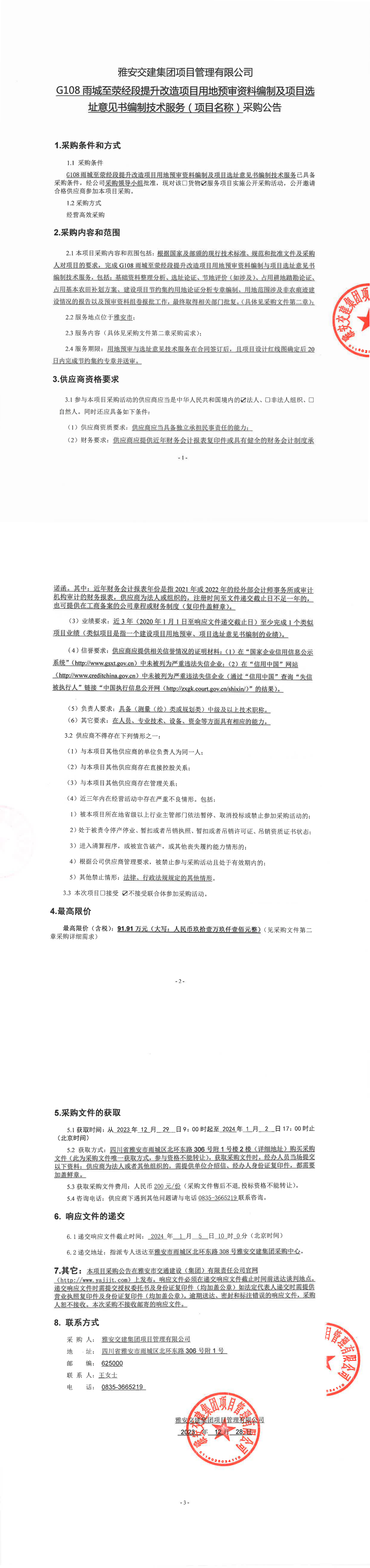雅安交建集團(tuán)項(xiàng)目管理有限公司G108雨城至滎經(jīng)段提升改造項(xiàng)目用地預(yù)審資料編制及項(xiàng)目選址意見(jiàn)書編制技術(shù)服務(wù)(項(xiàng)目名稱)采購(gòu)公告