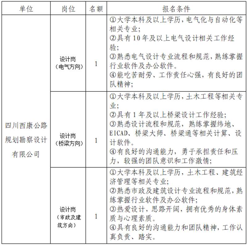雅安交建集團關(guān)于公開招聘所屬子公司工作人員的公告(勘察設(shè)計公司)