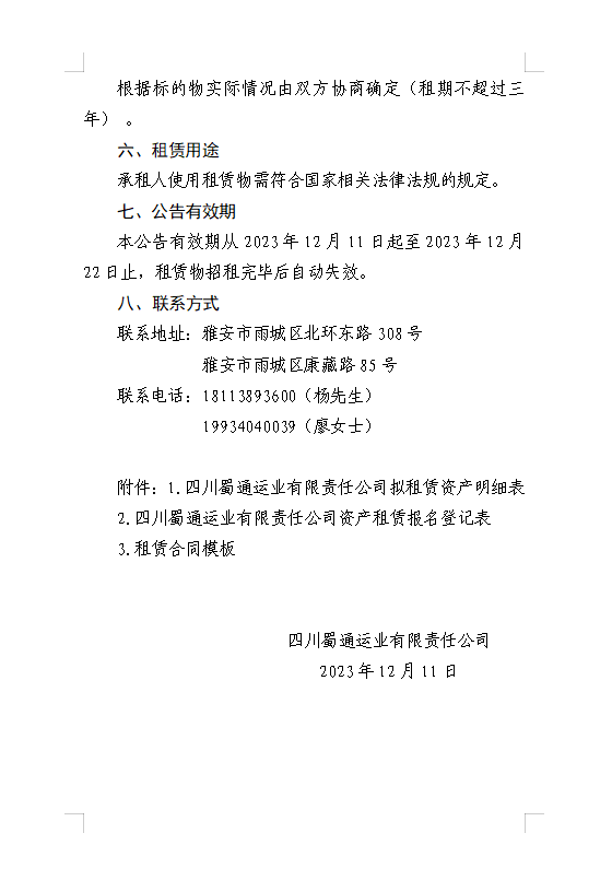 四川蜀通運業(yè)有限責(zé)任公司關(guān)于康藏路85號辦公樓4、5、7樓資產(chǎn)租賃公告附件