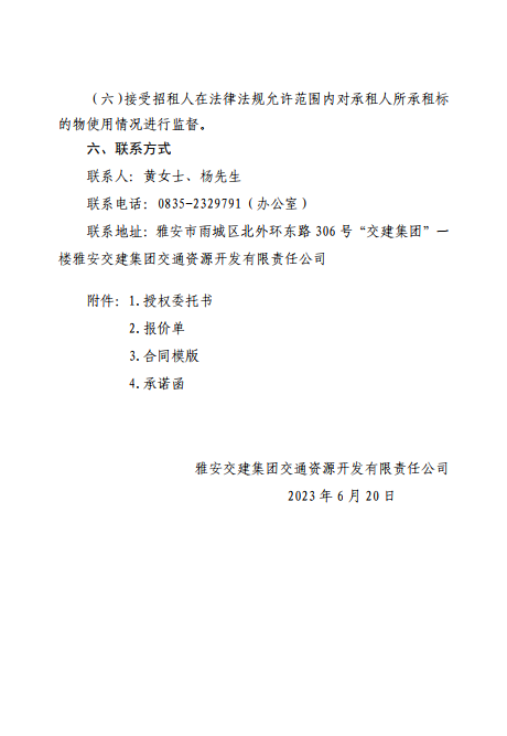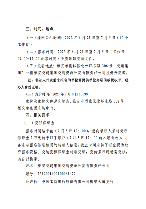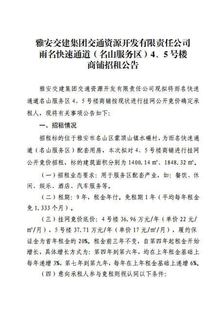 雅安交建集團交通資源開發(fā)有限責任公司雨名快速通道(名山服務(wù)區(qū))4、5號樓招租公告附件
