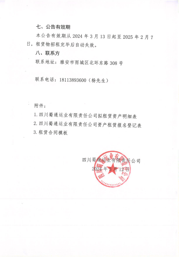 ËÄ´¨Êñͨß\˜I(y¨¨)ÓÐÏÞØŸÈι«Ë¾êPÓÚŒ¦Íâ×âÙU²¿·ÖéTÃæ¡¢Þk¹«ÊÒÙY®aµÄ¹«¸æ¸½¼þ