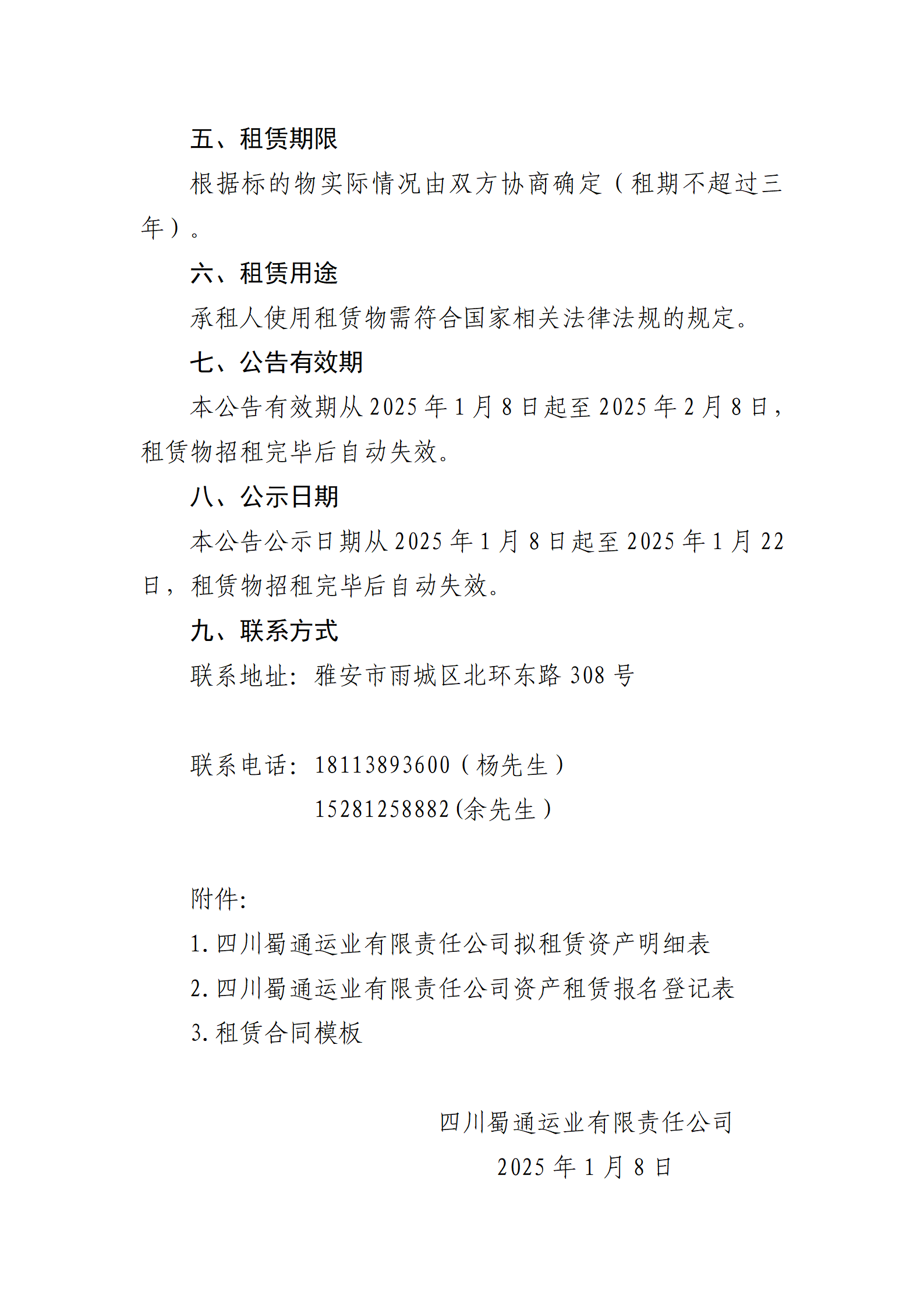 四川蜀通運業(yè)有限責(zé)任公司 關(guān)于寶興縣沿江路140號、穆坪南街16號、18號三間商鋪進行掛網(wǎng)招租的公告